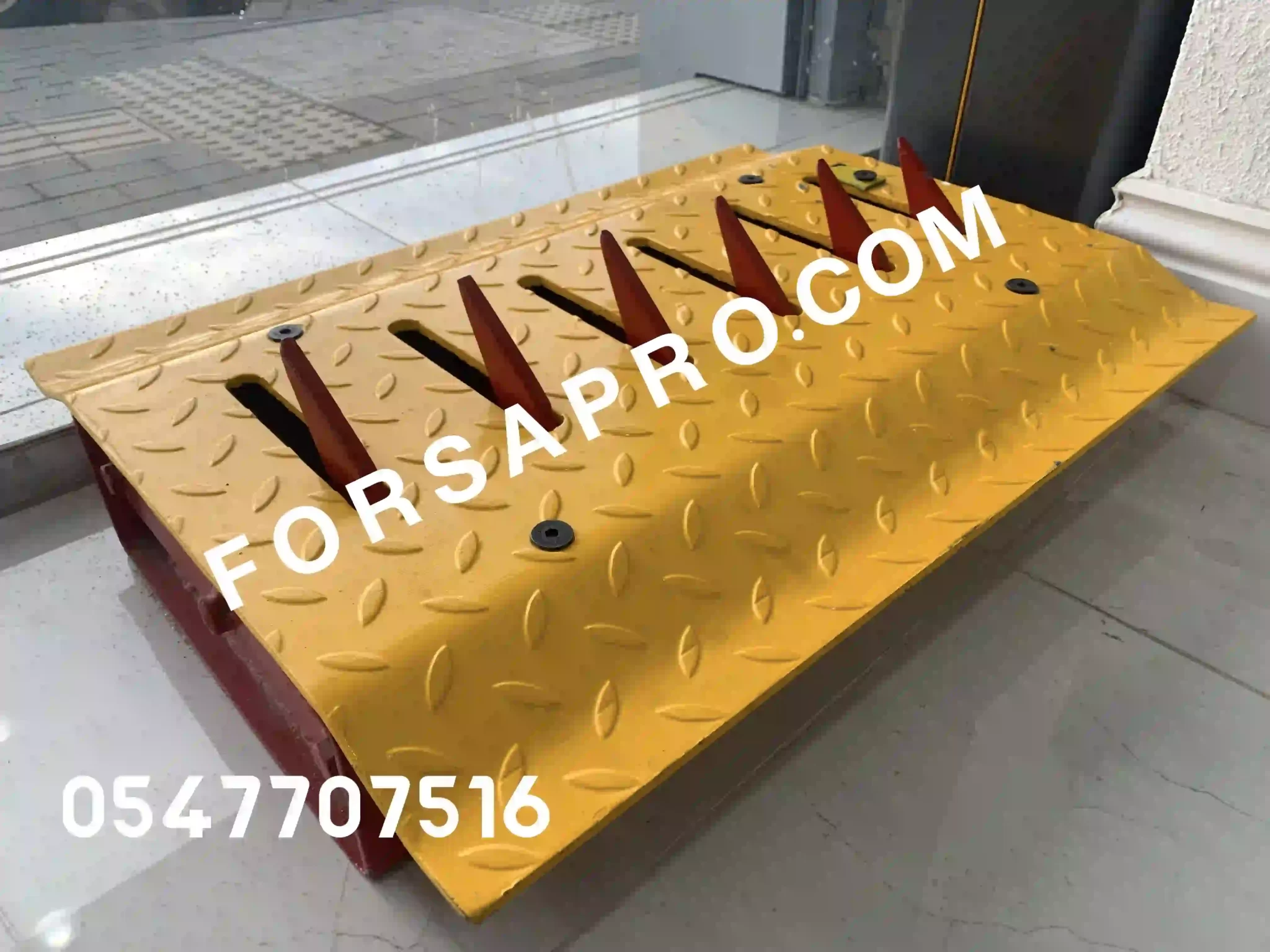 مطبات شوكية تستخدم لمنع السيارات من المرور عكس الاتجاه بطول ١٢٢ سم وعرض ٥٠ سم و ارتفاع ١٠ سم عن مستوى الأرض التوريد والتركيب لاي مكان داخل المملكة العربية السعودية ( الرياض – جدة – مكة المكرمة – المدينة المنورة – بريدة – عنيزة – حائل – تبوك – الحدود الشمالية – ابها – خميس مشيط – الدمام – الخبر – القطيف )